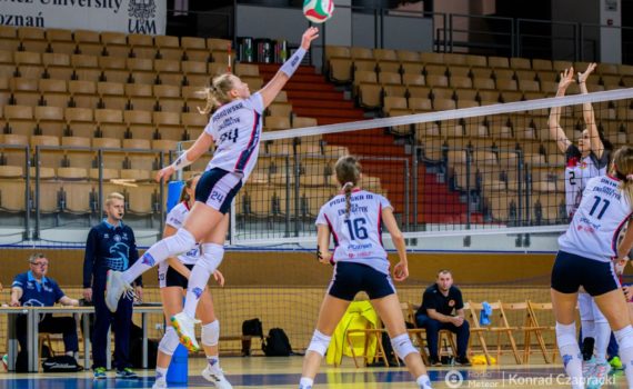 Emocjonujące spotkanie zapewniły w sobotę poznańskie siatkarki. W starciu z drużyną San-Pajda Jarosław zwyciężyły 3:1 (26:24, 21:25, 25:21, 25:19). Energetyczne pokazały klasę niejednokrotnie odrabiając z nawiązką straty i odwracając losy setów. Dzięki zwycięstwie podopieczne trenera Marcina Patyka pozostały na 4 […]