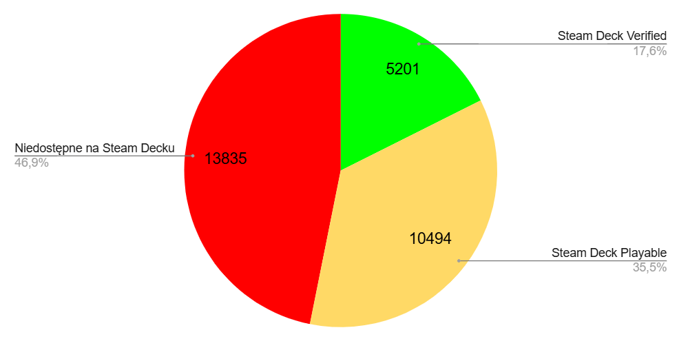 W obu kwestiach doszło do poprawy sytuacji za sprawą sukcesu Steam Decka. System operacyjny bowiem skrzętnie poprawiano, przez co dzisiaj można bez problemu wykorzystywać go do grania w przyzwoitej jakości. Wybór produkcji również jest większy – statystyki z portalu SteamDB wskazują, że wśród ok. 30 tys. tytułów mających więcej niż 100 recenzji na Steamie (czyli tych produkowanych z myślą o szerszej sprzedaży, a nie hobbystycznie), lekko ponad połowa z nich jest grywalna z możliwymi problemami z wydajnością (Steam Deck Playable) lub w pełni gotowa do działania (Steam Deck Verified).