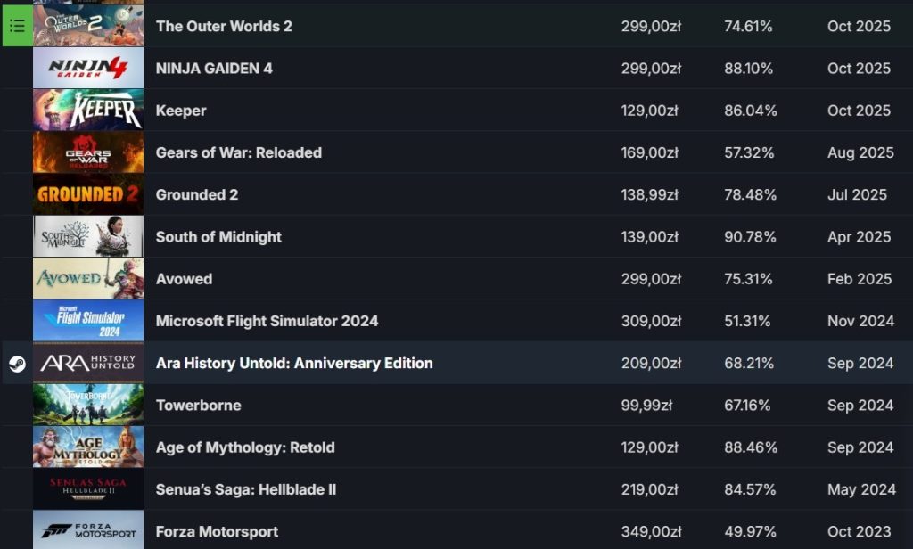 Dość powiedzieć, że PlayStation wydało 25 swoich dużych tytułów na Steamie, a Xbox – aż 73. Źródło: SteamDB, spis ostatnich gier Xboksa dostępne na Steamie